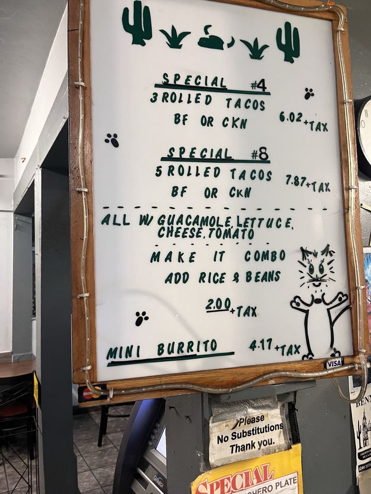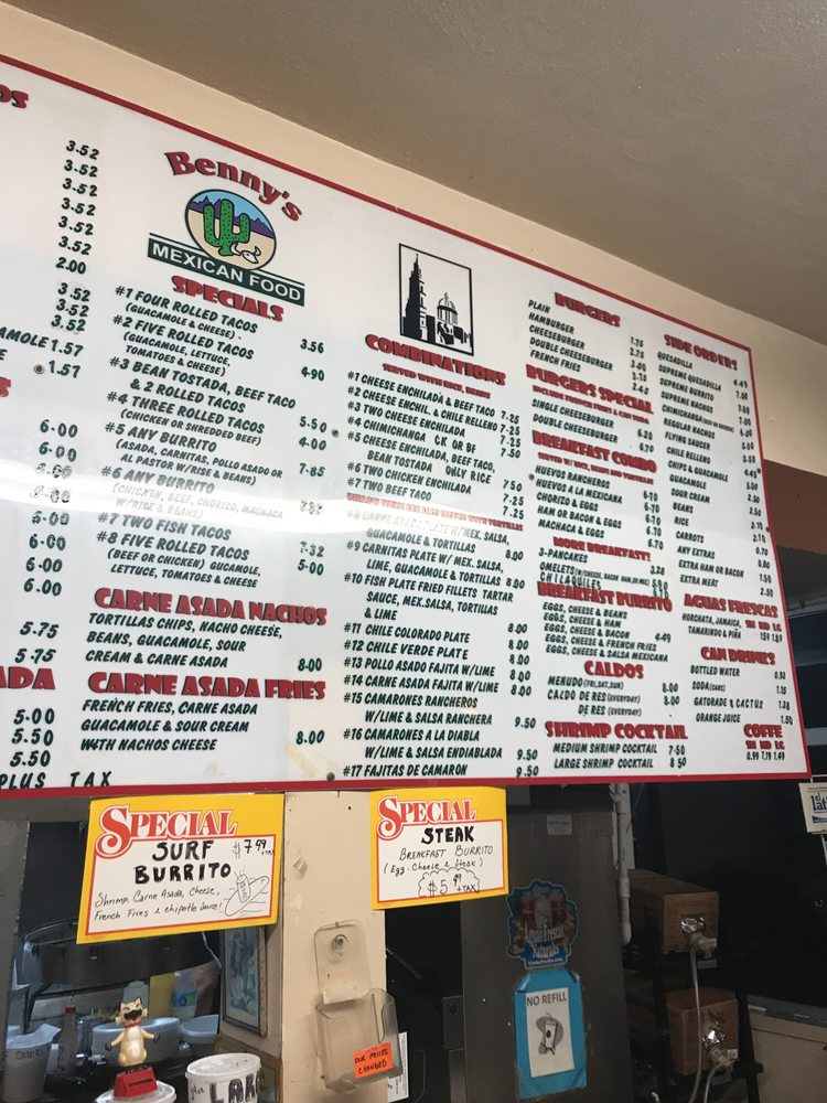 Benny's Mexican Food Menu